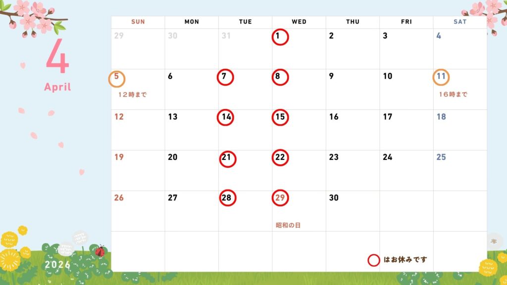 4月のご案内です。変更ありましたらまたお知らせいたします